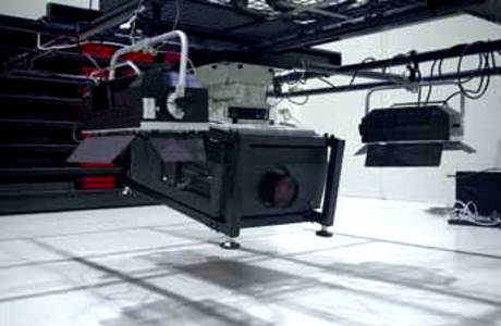Theater space: a high intensity 15000 lumen projector, an elevating grid